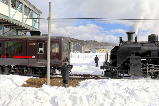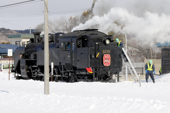 いため、復路はC11-171がバック運転で客車を牽引します。