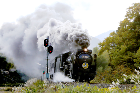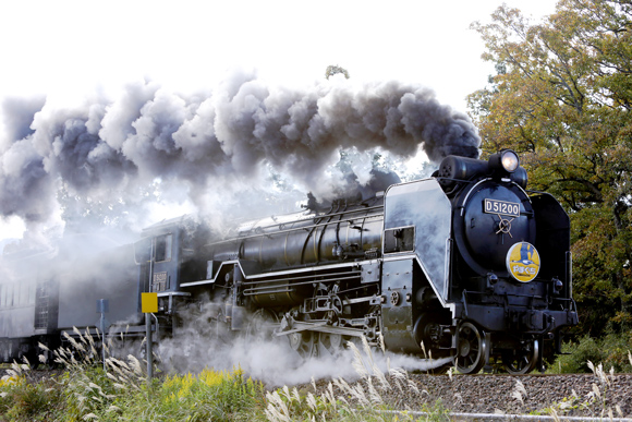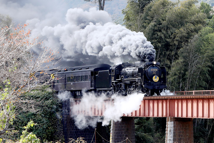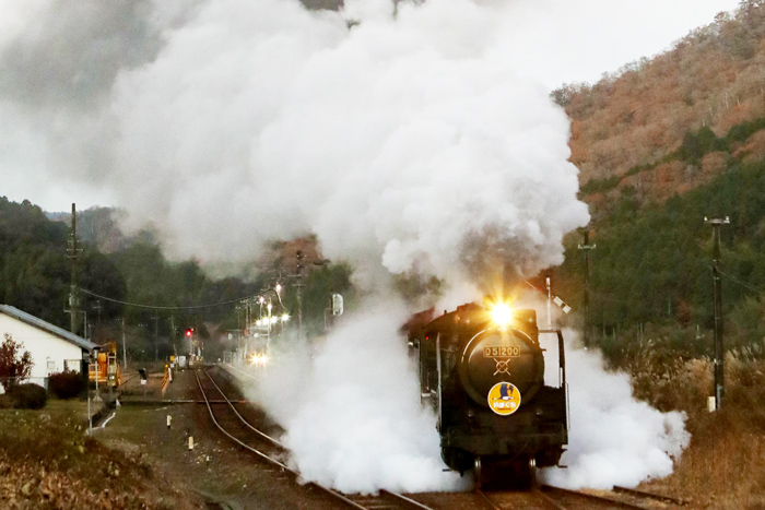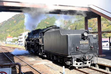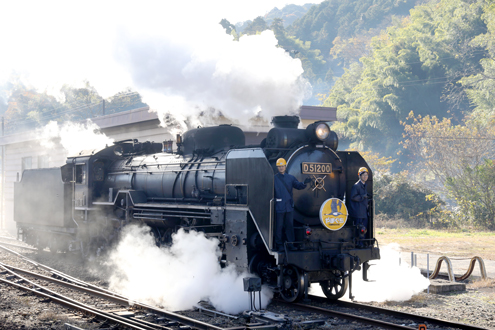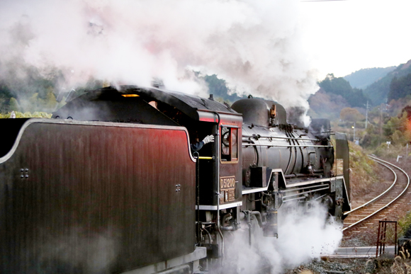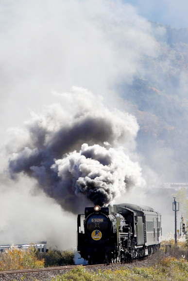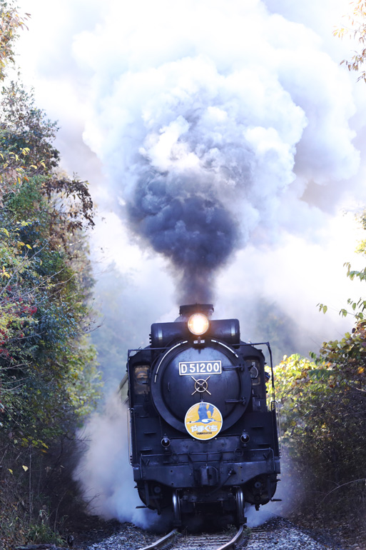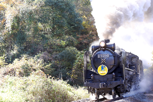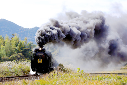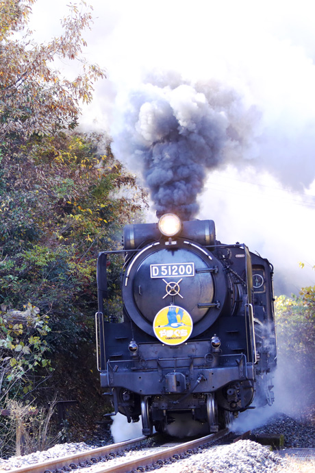 新山口駅から津和野駅間を汽笛を鳴らし、煙をはきながら力強く走る ”D51形 200号機”