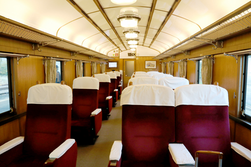 編成はマイテ49風客車は2+1列のグリーン車、それ以外の客車は普通車指定席となり、